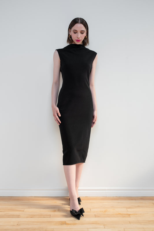 Sold outBlack Sculpted-Shoulder Midi Dress