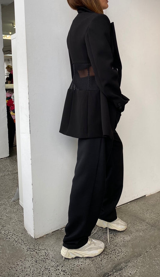 Women’s Black Sheer Mesh Blazer — Statement Tailored Layering Piece