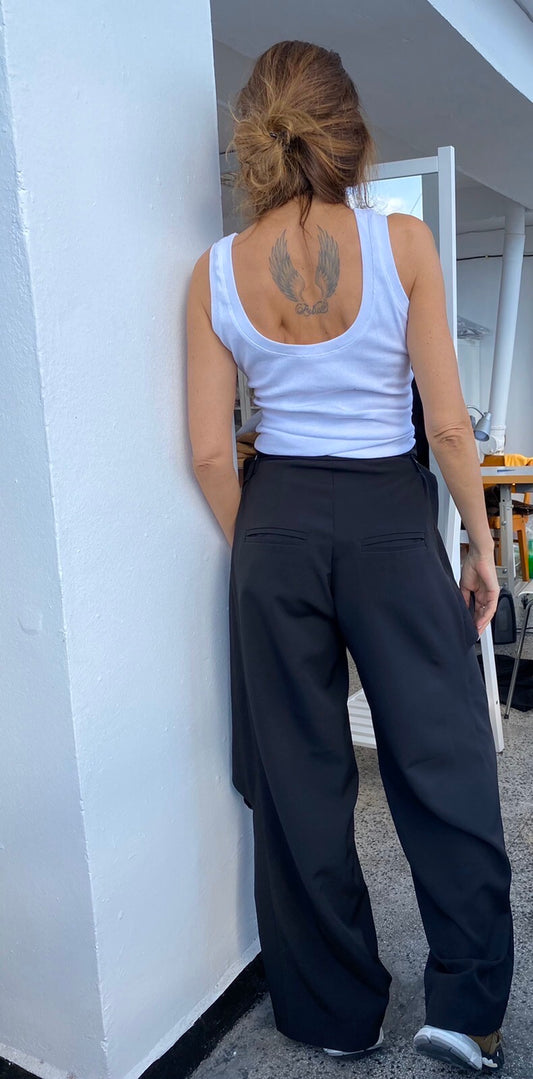 Black Wide-Leg Belted Trousers – Effortless Style & Tailored Fit